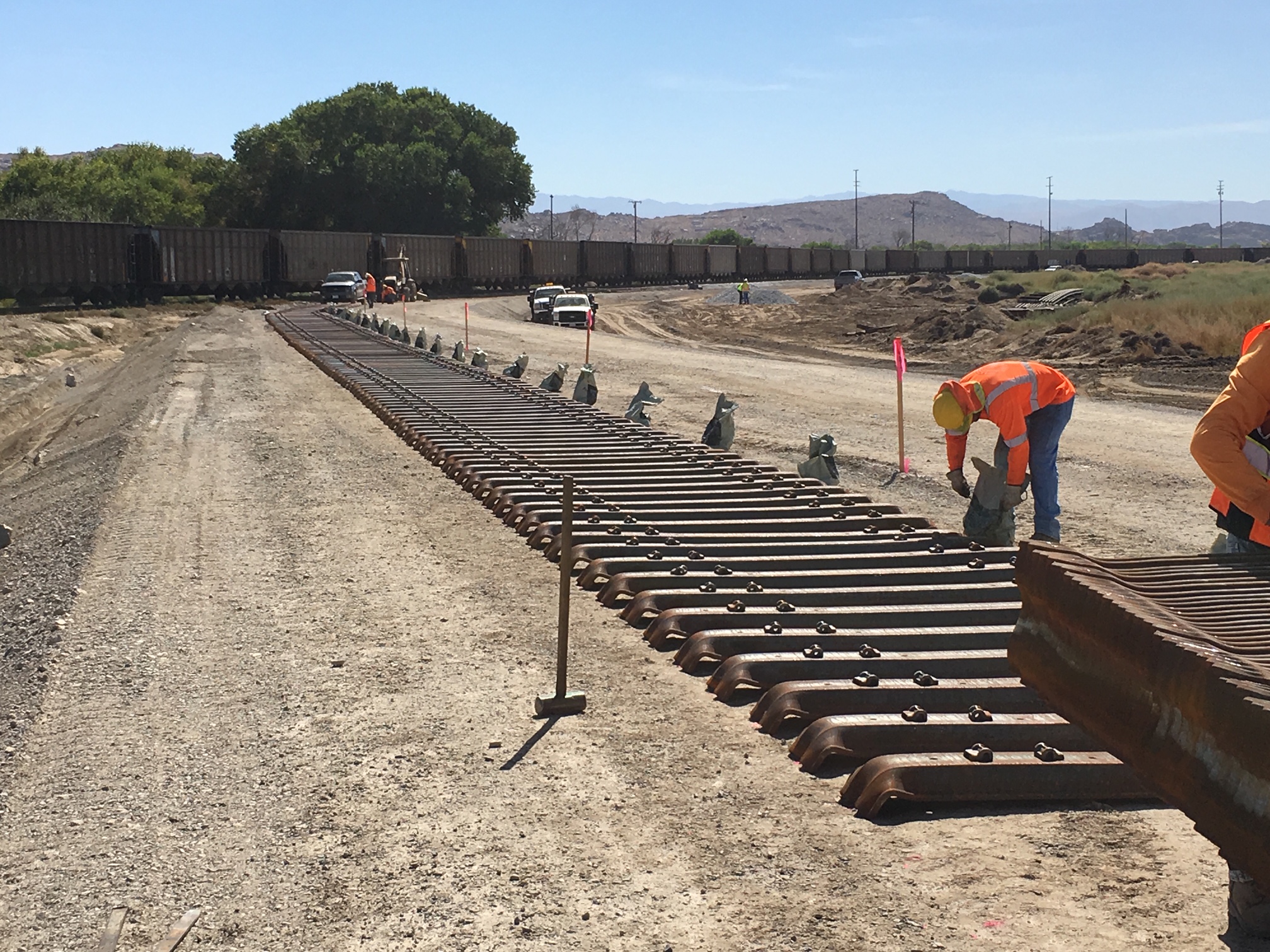Aggregate Loop Track, Victorville, CA – 9800 T/F with #11 and #9 turnouts all on steel ties.